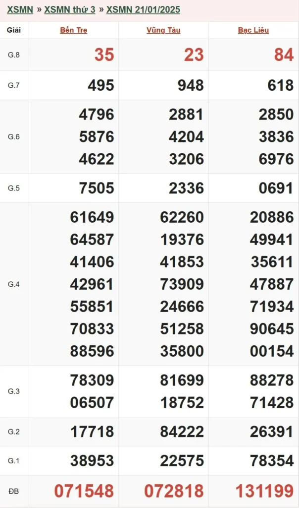Chốt lô Bạc Liêu đặc biệt ngày hôm nay 28/1/2025 như sau: